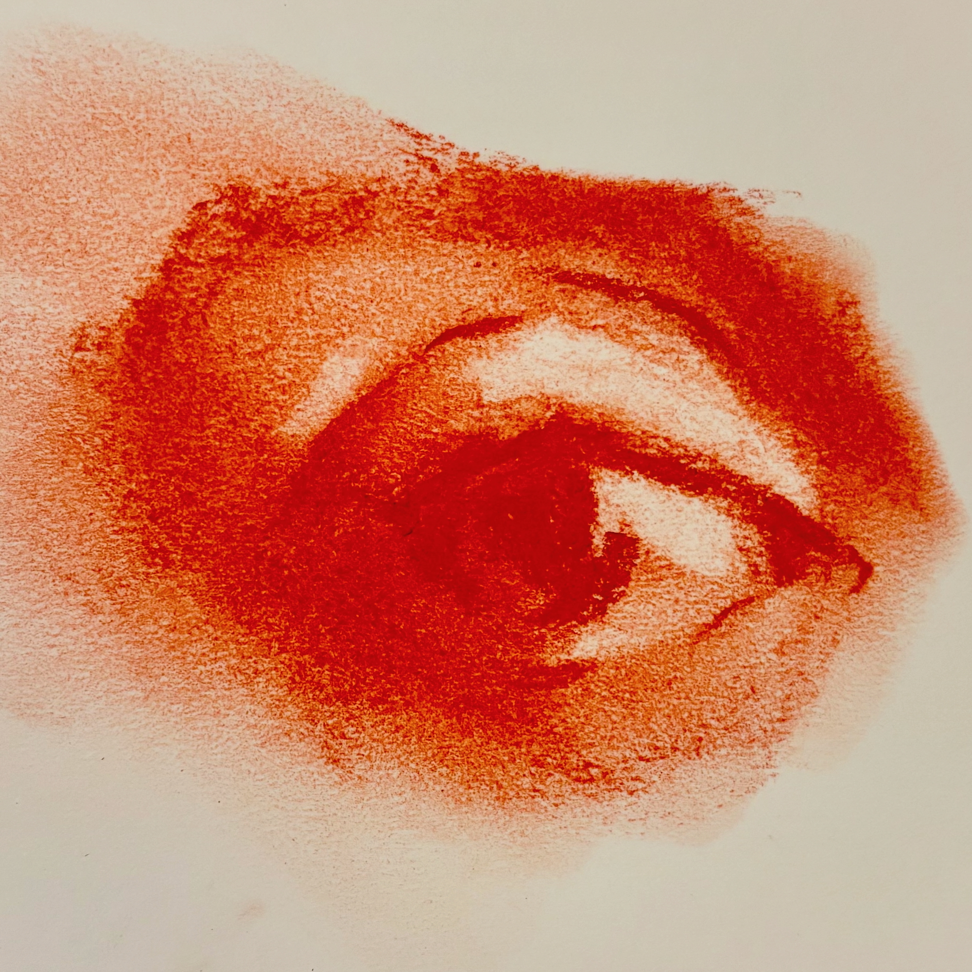 Red Mage Eye Study 3 (Blood Moon) Sanguine on paper, 4 x 4 in., framed $125 Collect